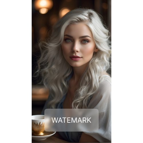 A woman with striking silver hair and captivating eyes enjoys a moment of solitude with a cup of coffee.