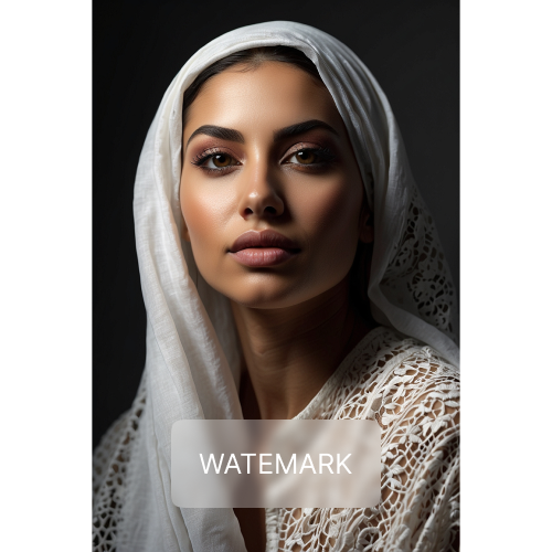 A captivating portrait of a woman draped in a translucent veil, her clear eyes offering a window to the soul.